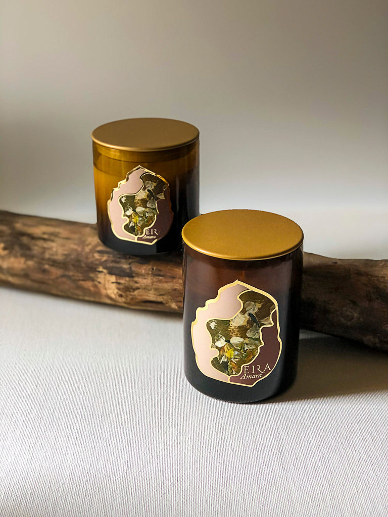Amara embodies resilience leading to greater clarity of purpose and self–awareness as you take in this woody and sensual fragrance. This candle binds together the natural woody tones of cedarwood, aromatic frankincense and earthy patchouli with hints of sweet vanillin reminiscent of dewy nights in the woods.